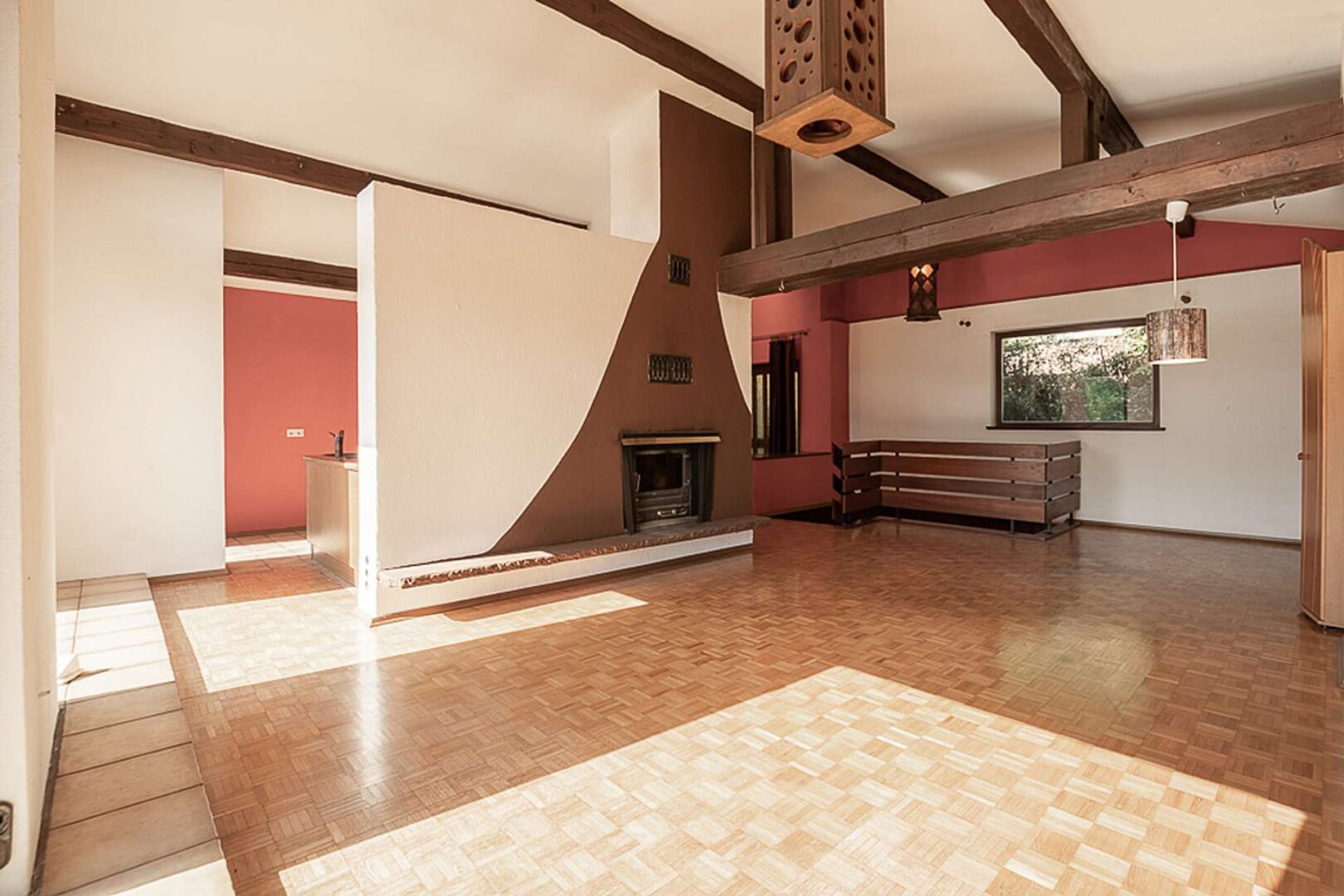 - Wohn- Essbereich mit offenem Kamin