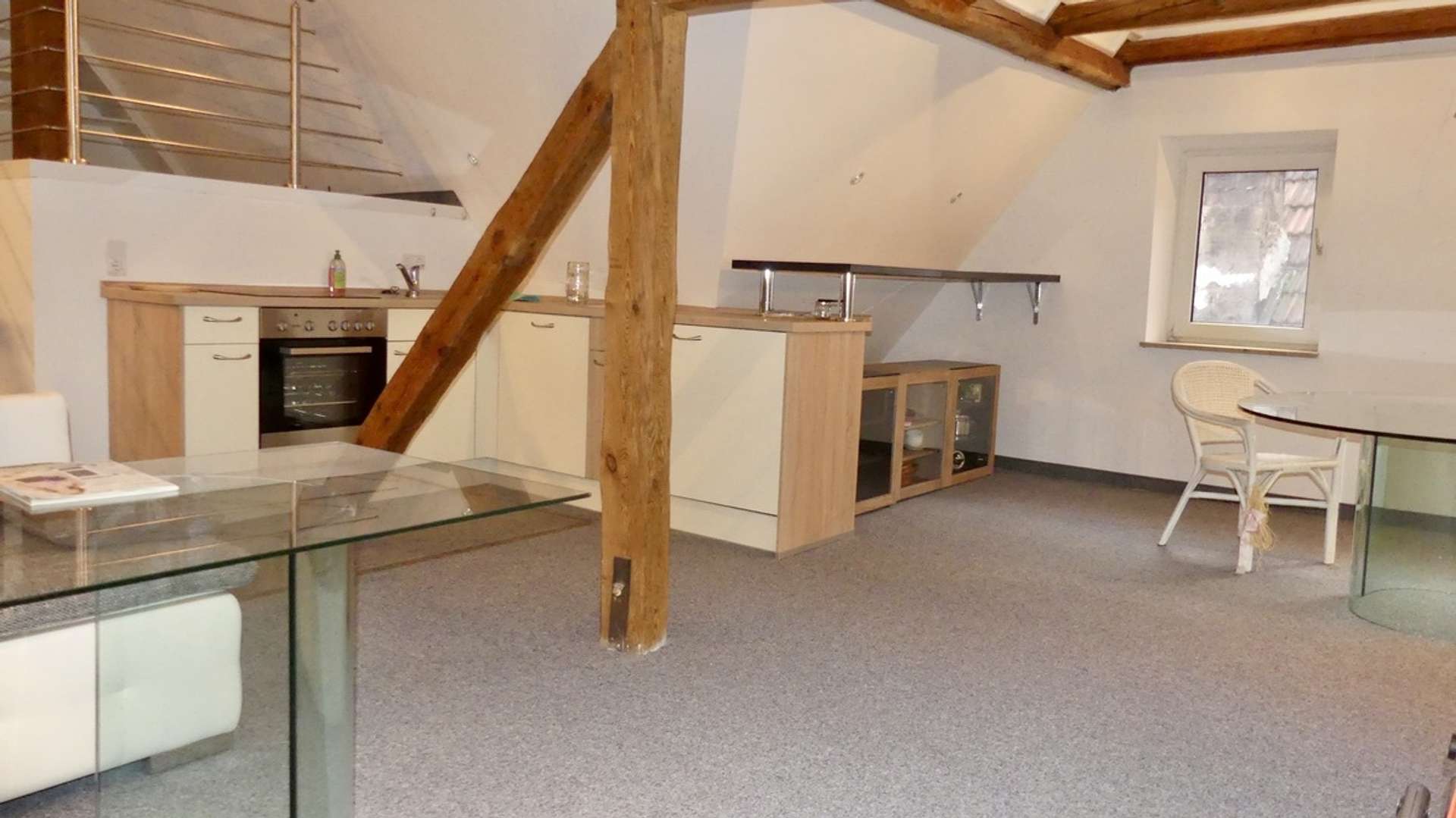Das Loft im 2. Obergeschoss ist offen und modern gestaltet. Es hat Einbauschränke, eine kleine Küche und eine fantastische Terrasse. Das Loft verfügt über ca. 200 m² Wohnfläche.