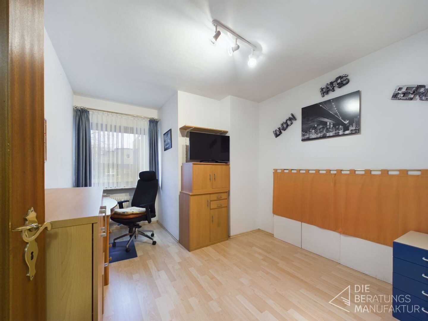 Das Raumangebot umfasst Diele, Küche, Bad mit Badewanne, Gäste WC, Büro, Schlafzimmer mit Balkon (ein Allzweckraum ist dort auch vorhanden), sowie Wohn-/Esszimmer mit Zugang zum 2.Balkon.