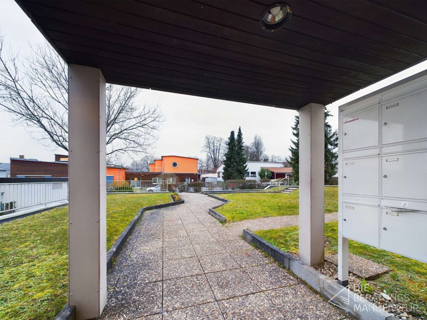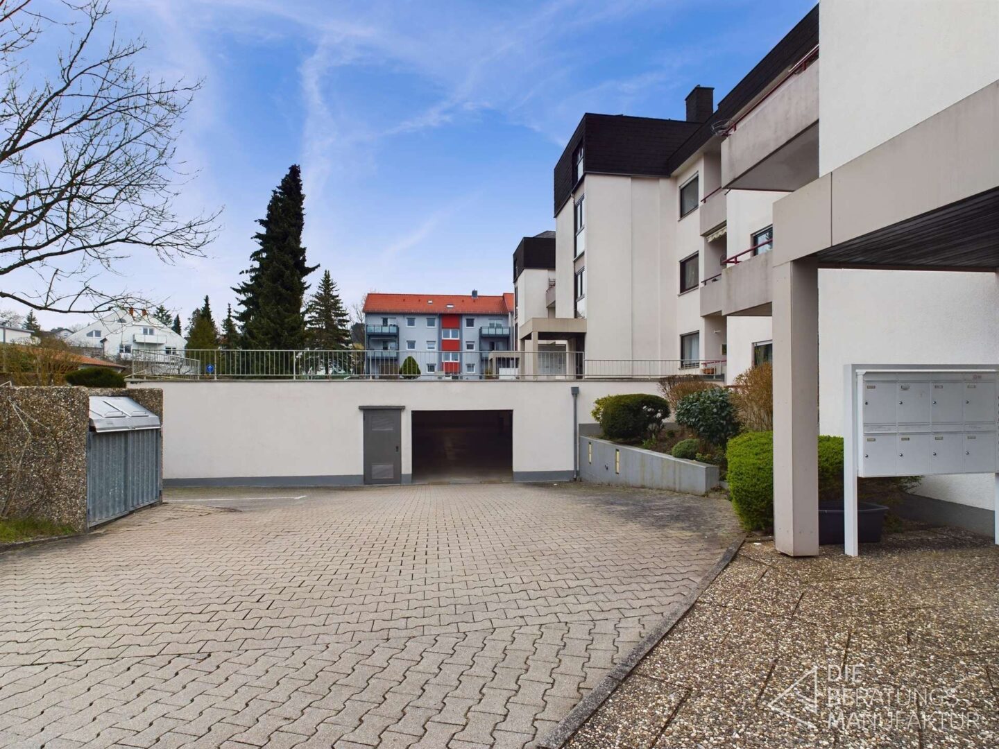 Zur Wohnung gehören ein eigenes Kellerabteil und ein Tiefgaragenstellplatz. Die Waschküche und der Garten ums Haus sind Gemeinschaftseigentum und können von allen Parteien genutzt werden. Die Wohnanlage ist nicht barrierefrei, hat aber einen Aufzug, welcher sowohl in alle Etagen als auch in den Keller fährt.